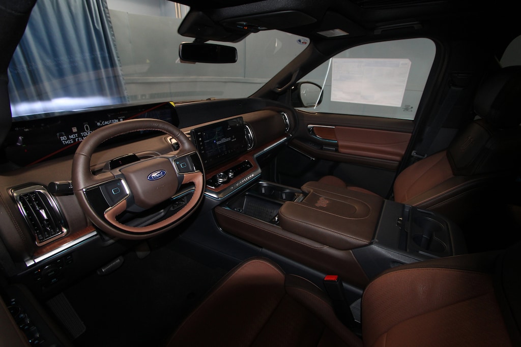 4WD, 22 Speakers, 3.73 Axle Ratio, 3rd row seats: split-bench, 4-Wheel Disc Brakes, ABS brakes, Adaptive suspension, Adjustable pedals, Air Conditioning, Alloy wheels, AM/FM radio: SiriusXM with 360L, Apple CarPlay/Android Auto, Auto High-beam Headlights, Auto-dimming door mirrors, Auto-dimming Rear-View mirror, Automatic temperature control, BlueCruise Equipped (1-Year Plan), Brake assist, Bumpers: body-color, Compass, Delay-off headlights, Driver door bin, Driver vanity mirror, Dual front impact airbags, Dual front side impact airbags, Electronic Stability Control, Emergency communication system: 911 Assist, Equipment Group 400A Standard Package, Exterior Parking Camera Rear, Floor Liners, Front & Second Rows, Four wheel independent suspension, Front anti-roll bar, Front Bucket Seats, Front Center Armrest, Front dual zone A/C, Front reading lights, Fully automatic headlights, Garage door transmitter, Genuine wood dashboard insert, Genuine wood door panel insert, Heated door mirrors, Heated front seats, Heated rear seats, Heated steering wheel, Heated/Vent Prem Del Rio Lthr Fr Captain's Chairs, Illuminated entry, Leather steering wheel, Low tire pressure warning, Memory seat, Navigation System, Occupant sensing airbag, Outside temperature display, Overhead airbag, Overhead console, Panic alarm, Passenger door bin, Passenger vanity mirror, Pedal memory, Power door mirrors, Power driver seat, Power moonroof: Vista Roof, Power passenger seat, Power steering, Power windows, Radio data system, Radio: B&O Unleashed Sound System by Bang & Olufsen, Rain sensing wipers, Rear air conditioning, Rear anti-roll bar, Rear reading lights, Rear window defroster, Rear window wiper, Reclining 3rd row seat, Remote keyless entry, Security system, SiriusXM w/360L, Speed control, Speed-sensing steering, Speed-Sensitive Wipers, Split folding rear seat, Spoiler, Steering wheel memory, Steering wheel mounted audio controls, Tachometer, Telescoping steering wheel, Tilt steering wheel, Traction control, Trip computer, Turn signal indicator mirrors, Variably intermittent wipers, Ventilated front seats, Voltmeter, Wheels: 22" Sinister Brown w/Diamond Cut Face Alum, 4WD.