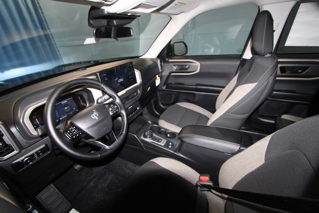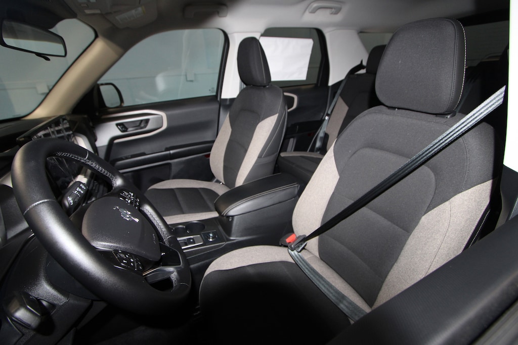 4-Wheel Disc Brakes, 6 Speakers, ABS brakes, Air Conditioning, Alloy wheels, AM/FM radio: SiriusXM with 360L, AM/FM Stereo, Apple CarPlay/Android Auto, Auto High-beam Headlights, Automatic temperature control, Brake assist, Cloth with Easy-to-Clean Front Bucket Seats, Compass, Convenience Package, Delay-off headlights, Driver door bin, Driver vanity mirror, Dual front impact airbags, Dual front side impact airbags, Electronic Stability Control, Emergency communication system: SYNC 4 911 Assist, Exterior Parking Camera Rear, Ford Connectivity Package (1-Year Included), Four wheel independent suspension, Front and Rear Floor Liners Without Carpet Mats, Front anti-roll bar, Front Bucket Seats, Front Center Armrest, Front Driver/Passenger Seat Back Map Pockets, Front reading lights, Fully automatic headlights, Heated 8-Way Power Driver's Seat, Heated door mirrors, Illuminated entry, Internet access capable: 5G Modem - Ford Connectivity Package, Knee airbag, LED Fog Lamps, Liftgate with Black BRONCO SPORT Lettering, Low tire pressure warning, Occupant sensing airbag, Outside temperature display, Overhead airbag, Overhead console, Panic alarm, Passenger door bin, Passenger vanity mirror, Power door mirrors, Power steering, Power windows, Premium Wrapped Steering Wheel, Radio data system, Rear anti-roll bar, Rear Parking Sensors, Rear reading lights, Rear seat center armrest, Rear window defroster, Rear window wiper, Remote keyless entry, Security system, SiriusXM with 360L, Speed control, Speed-sensing steering, Speed-Sensitive Wipers, Split folding rear seat, Steering wheel mounted audio controls, SYNC 4 with Enhanced Voice Recognition, Tachometer, Telescoping steering wheel, Tilt steering wheel, Traction control, Trip computer, Variably intermittent wipers, Wheels: 17" Carbonized Gray Painted Aluminum, Wheels: 17" Carbonized Gray-Painted Aluminum.