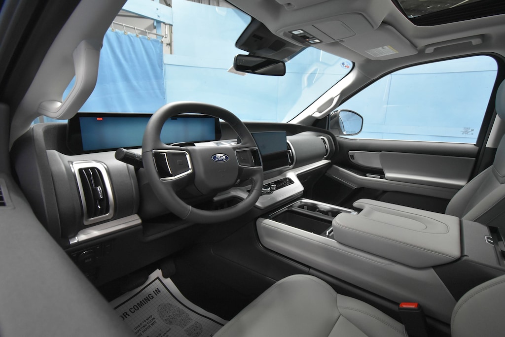26mm Engine Radiator, 2nd Row Power-Folding Captain's Chairs, 3.73 Axle Ratio, 360-Degree Zone Lighting, 3rd Row Flexible Seating (40/20/40), 3rd row seats: split-bench, 3rd Row Vinyl Seats, 4-Door Intelligent Access (Lock/Unlock), 4-Way Manual Head Restraints, 4-Wheel Disc Brakes, 6 Speakers, ABS brakes, Active Air Dam, ActiveX-Trimmed Front Heated Captain's Chairs, Air Conditioning, Alloy wheels, AM/FM radio: SiriusXM with 360L, Apple CarPlay/Android Auto, Auto High-beam Headlights, Auto-dimming Rear-View mirror, Automatic temperature control, BlueCruise (equipment + 1-Year + 90-Day Plan), Brake assist, Bumpers: body-color, Cloth Front Captain's Chairs, Compass, Delay-off headlights, Driver door bin, Driver vanity mirror, Dual front impact airbags, Dual front side impact airbags, Dual Power-Folding Sideview Mirrors with Autofold, Electronic Stability Control, Emergency communication system: 911 Assist, Equipment Group 202A Touring Package, Exterior Parking Camera Rear, Flex Powered Console, Ford Connectivity Package (1-Year Included), Ford Digital Experience, Ford Split Gate, Four wheel independent suspension, Front and 2nd Rows Floor Liners Without Carper Mats, Front anti-roll bar, Front Bucket Seats, Front Center Armrest, Front dual zone A/C, Front reading lights, Front Side Laminated Glass, Fully automatic headlights, Heated door mirrors, Heated Steering Wheel, Heavy-Duty Trailer Tow, Illuminated entry, Integrated Trailer Brake Control, Intersection Assist, Low tire pressure warning, Memory Driver Seat, Navigation System, Occupant sensing airbag, Outside temperature display, Overhead airbag, Overhead console, Panic alarm, Passenger door bin, Passenger vanity mirror, Power door mirrors, Power driver seat, Power Panoramic Vista Roof with Power Sunshade, Power passenger seat, Power steering, Power Tilt/Telescopic Steering Wheel with Memory, Power windows, Pro Power Onboard - 400W, Radio data system, Radio: AM/FM Stereo with MP3 Capable, Rain Sensitive Windshield Wipers, Rear air conditioning, Rear anti-roll bar, Rear reading lights, Rear window defroster, Rear window wiper, Reclining 3rd row seat, Remote keyless entry, Security system, SiriusXM with 360L, Speed control, Speed-sensing steering, Speed-Sensitive Wipers, Split folding rear seat, Spoiler, Steering wheel mounted audio controls, Tachometer, Telescoping steering wheel, Tilt steering wheel, Traction control, Trip computer, USB Ports, Variably intermittent wipers, Voltmeter, Wheels: 18 x 8.5 Dark Alloy Painted Aluminum, Wheels: 20 x 8.5 Bright Machined Aluminum.
