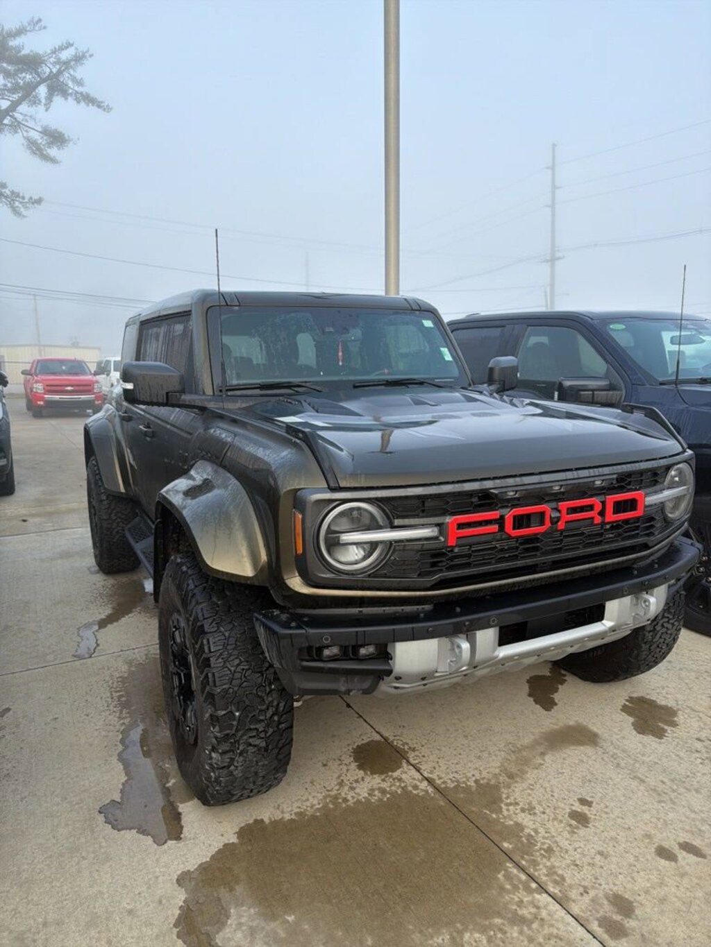 2024 Ford Bronco Raptor Recent Arrival! We want you to shop confidently for your next used car at The BIG Ford Store, D-Patrick Ford. We are located on Highway 41 and Walnut in Evansville, right next to the Lloyd Expressway. Buy this used vehicle 100% online or in-store. This pre-owned vehicle was put through an extensive inspection before hitting our lot. Because of this, we are able to offer a 3-month/3,000-mile comprehensive limited warranty. You also get our Love It or Return It 5-day, 300-mile Exchange Policy. See our website for more details on both. We also offer extended service plans, vehicle protection plans, and offer a CarFax vehicle history report. *Prices listed do not include a $250 documentation fee, applicable tax, title, tags, license, or $195 service and preparation. All pricing, vehicle information, and features (such as accessories and color) are believed to be accurate, but we do not warrant or guarantee such accuracy. The prices shown above may vary from region to region, and incentives are subject to change. Some offers listed may not be available to all customers. All online sale commitments are subject to confirmation of continued availability of vehicle. Once availability is confirmed, online sale agreement becomes binding upon the parties. If any information found on the website is thought to be erroneous, please verify information with a customer service representative. See dealer for full details. Looking to sell your current vehicle? We buy cars for cash. Every test drive at D-Patrick Ford in Evansville earns $10 to a local charity. Schedule your test drive today! 10 Speakers, 4-Wheel Disc Brakes, ABS brakes, Air Conditioning, Alloy wheels, AM/FM radio: SiriusXM with 360L, Auto High-beam Headlights, Auto-dimming Rear-View mirror, Automatic temperature control, Brake assist, Compass, Connected Navigation, Convertible HardTop, Convertible roof lining, Delay-off headlights, Driver door bin, Driver vanity mirror, Dual front impact airbags, Dual front side impact airbags, Electronic Stability Control, Emergency communication system: 911 Assist, Equipment Group 374A High/Lux Package, Exterior Parking Camera Rear, Front anti-roll bar, Front Bucket Seats, Front Center Armrest, Front dual zone A/C, Front fog lights, Front reading lights, Front wheel independent suspension, Fully automatic headlights, Garage door transmitter, Glass rear window, Heated door mirrors, Heated front seats, Heated steering wheel, Illuminated entry, Integrated roll-over protection, Interior Carbon Fiber Pack 6, Leather Shift Knob, Low tire pressure warning, Marine Grade Vinyl Bucket Seats, Navigation system: Connected Navigation, Occupant sensing airbag, Outside temperature display, Overhead airbag, Overhead console, Panic alarm, Passenger door bin, Passenger vanity mirror, Power door mirrors, Power steering, Power windows, Radio data system, Radio: B&O Sound System by Bang & Olufsen, Raptor Side & Hood Graphics, Rear anti-roll bar, Rear seat center armrest, Rear window defroster, Rear window wiper, Remote keyless entry, Security system, SiriusXM Radio w/360L, Speed control, Split folding rear seat, Steering wheel mounted audio controls, SYNC 4, Tachometer, Telescoping steering wheel, Tilt steering wheel, Traction control, Trip computer, Turn signal indicator mirrors, Variably intermittent wipers, Voltmeter, Wheels: 17 Black High Gloss-Painted Aluminum, Wheels: 17 Dark Carbonized Gray Alloy Painted. CARFAX One-Owner. Clean CARFAX. 4D Sport Utility Raptor 10-Speed Automatic 3.0L EcoBoost V6 4WD Shelter Green Metallic CALL TODAY (812) 625-4823 OR SHOP ONLINE AT WWW.DPATRICKFORD.COM.