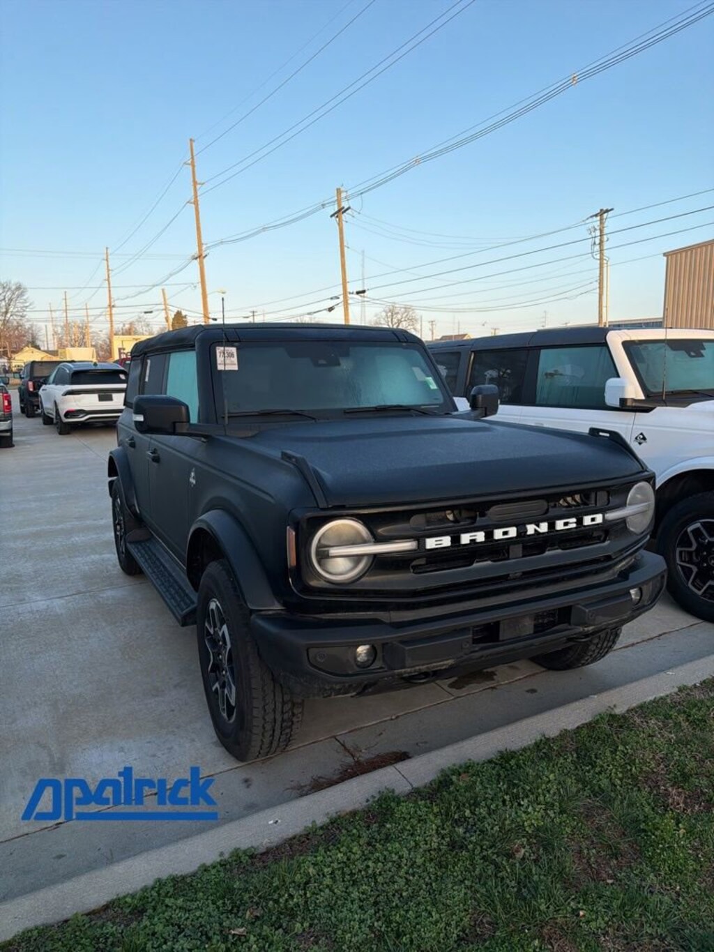 2025 Ford Bronco Outer Banks Recent Arrival! We want you to shop confidently for your next used car at The BIG Ford Store, D-Patrick Ford. We are located on Highway 41 and Walnut in Evansville, right next to the Lloyd Expressway. Buy this used vehicle 100% online or in-store. This pre-owned vehicle was put through an extensive inspection before hitting our lot. Because of this, we are able to offer a 3-month/3,000-mile comprehensive limited warranty. You also get our Love It or Return It 5-day, 300-mile Exchange Policy. See our website for more details on both. We also offer extended service plans, vehicle protection plans, and offer a CarFax vehicle history report. *Prices listed do not include a $250 documentation fee, applicable tax, title, tags, license, or $195 service and preparation. All pricing, vehicle information, and features (such as accessories and color) are believed to be accurate, but we do not warrant or guarantee such accuracy. The prices shown above may vary from region to region, and incentives are subject to change. Some offers listed may not be available to all customers. All online sale commitments are subject to confirmation of continued availability of vehicle. Once availability is confirmed, online sale agreement becomes binding upon the parties. If any information found on the website is thought to be erroneous, please verify information with a customer service representative. See dealer for full details. Looking to sell your current vehicle? We buy cars for cash. Every test drive at D-Patrick Ford in Evansville earns $10 to a local charity. Schedule your test drive today! 18 Bright Machined Aluminum Wheels, 3.73 Axle Ratio, 4-Wheel Disc Brakes, 7 Speakers, ABS brakes, Air Conditioning, Alloy wheels, AM/FM radio: SiriusXM with 360L, AM/FM Stereo, Auto High-beam Headlights, Auto-dimming Rear-View mirror, Automatic temperature control, Brake assist, Compass, Connected Navigation, Delay-off headlights, Driver door bin, Driver vanity mirror, Dual front impact airbags, Dual front side impact airbags, Electronic Stability Control, Emergency communication system: 911 Assist, Equipment Group 314A Lux Package, Exterior Parking Camera Rear, Front & Rear Floor Liners, Front anti-roll bar, Front Bucket Seats, Front Center Armrest, Front dual zone A/C, Front fog lights, Front reading lights, Front wheel independent suspension, Fully automatic headlights, Heated door mirrors, Heated front seats, Heated Leather-Trimmed/Vinyl Bucket Seats, Heated steering wheel, Illuminated entry, Integrated roll-over protection, Internet access capable: FordPass Connect, Leather Shift Knob, Low tire pressure warning, Navigation system: Connected Navigation, Occupant sensing airbag, Outside temperature display, Overhead airbag, Overhead console, Panic alarm, Passenger door bin, Passenger vanity mirror, Power door mirrors, Power driver seat, Power passenger seat, Power steering, Power windows, Radio data system, Rear seat center armrest, Remote keyless entry, Security system, SiriusXM w/360L, Speed control, Split folding rear seat, Steering wheel mounted audio controls, SYNC 4, Tachometer, Telescoping steering wheel, Tilt steering wheel, Traction control, Trip computer, Variably intermittent wipers, Voltmeter. CARFAX One-Owner. 4D Sport Utility Outer Banks 10-Speed Automatic 2.3L EcoBoost I-4 4WD Shadow Black CALL TODAY (812) 625-4823 OR SHOP ONLINE AT WWW.DPATRICKFORD.COM.