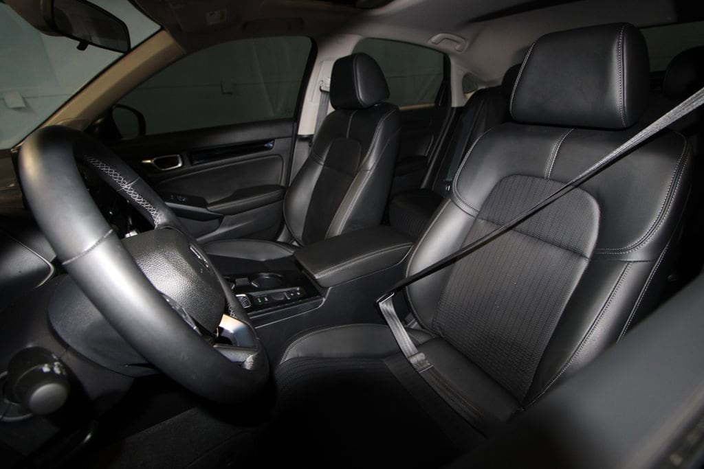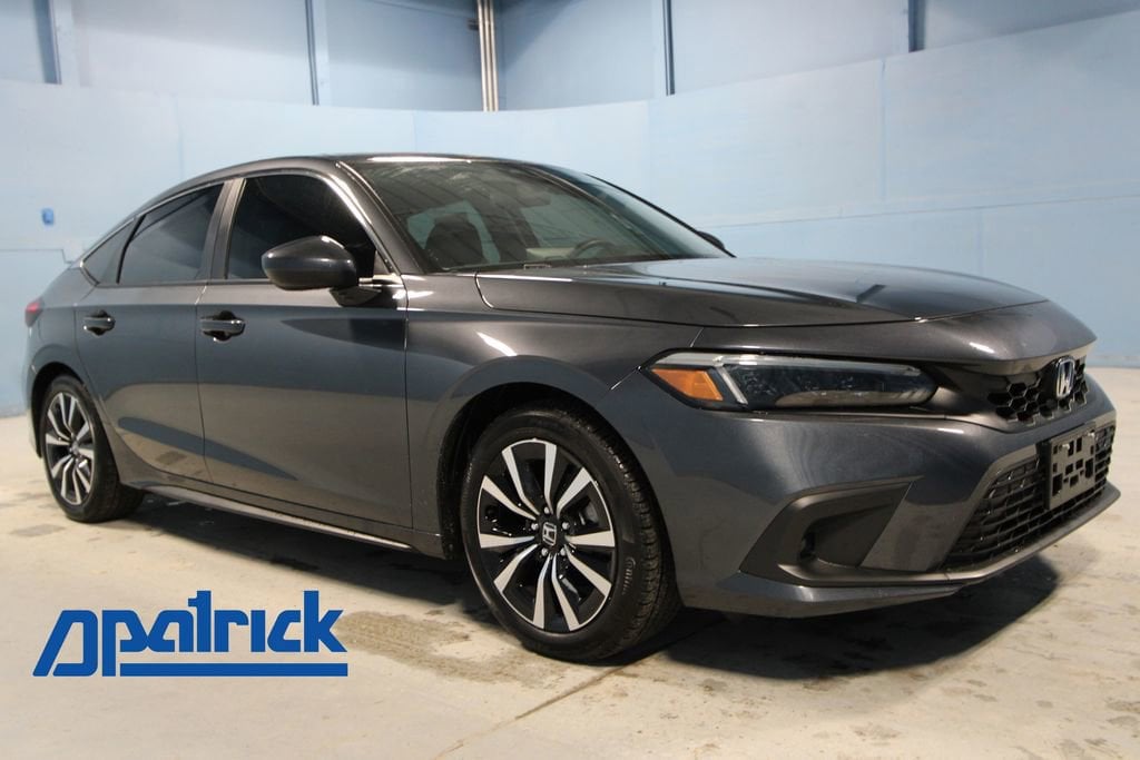 2024 Honda Civic EX-L We want you to shop confidently for your next used car at The BIG Ford Store, D-Patrick Ford. We are located on Highway 41 and Walnut in Evansville, right next to the Lloyd Expressway. Buy this used vehicle 100% online or in-store. This pre-owned vehicle was put through an extensive inspection before hitting our lot. Because of this, we are able to offer a 3-month/3,000-mile comprehensive limited warranty. You also get our Love It or Return It 5-day, 300-mile Exchange Policy. See our website for more details on both. We also offer extended service plans, vehicle protection plans, and offer a CarFax vehicle history report. *Prices listed do not include a $250 documentation fee, applicable tax, title, tags, license, or $195 service and preparation. All pricing, vehicle information, and features (such as accessories and color) are believed to be accurate, but we do not warrant or guarantee such accuracy. The prices shown above may vary from region to region, and incentives are subject to change. Some offers listed may not be available to all customers. All online sale commitments are subject to confirmation of continued availability of vehicle. Once availability is confirmed, online sale agreement becomes binding upon the parties. If any information found on the website is thought to be erroneous, please verify information with a customer service representative. See dealer for full details. Looking to sell your current vehicle? We buy cars for cash. Every test drive at D-Patrick Ford in Evansville earns $10 to a local charity. Schedule your test drive today! Leather, 17 Alloy Wheels, 4-Wheel Disc Brakes, 8 Speakers, ABS brakes, Adaptive Cruise Control: Adaptive Cruise Control (ACC) with Low-Speed Follow, Air Conditioning, Alloy wheels, AM/FM radio, Apple CarPlay/Android Auto, Auto High-beam Headlights, Automatic temperature control, Blind Spot Information (BSI) System warning, Brake assist, Bumpers: body-color, Delay-off headlights, Driver door bin, Driver vanity mirror, Dual front impact airbags, Dual front side impact airbags, Electronic Stability Control, Emergency communication system: HondaLink, Exterior Parking Camera Rear, Four wheel independent suspension, Front anti-roll bar, Front Bucket Seats, Front Center Armrest, Front dual zone A/C, Front reading lights, Fully automatic headlights, Heated door mirrors, Heated Front Bucket Seats, Heated front seats, Illuminated entry, Knee airbag, Lane departure: Lane Keeping Assist System (LKAS) active, Leather Shift Knob, Leather steering wheel, Leather-Trimmed Seating Surfaces, Low tire pressure warning, Occupant sensing airbag, Outside temperature display, Overhead airbag, Panic alarm, Passenger door bin, Passenger vanity mirror, Power door mirrors, Power driver seat, Power moonroof, Power steering, Power windows, Radio data system, Radio: 180-Watt Audio System, Rear anti-roll bar, Rear seat center armrest, Rear side impact airbag, Rear window defroster, Rear window wiper, Remote keyless entry, Security system, Speed control, Speed-sensing steering, Split folding rear seat, Steering wheel mounted audio controls, Tachometer, Telescoping steering wheel, Tilt steering wheel, Traction control, Trip computer, Variably intermittent wipers, Voltmeter, Leather. CARFAX One-Owner. Clean CARFAX. 4D Hatchback EX-L CVT 1.5L I4 DOHC 16V FWD Gray CALL TODAY (812) 625-4823 OR SHOP ONLINE AT WWW.DPATRICKFORD.COM.