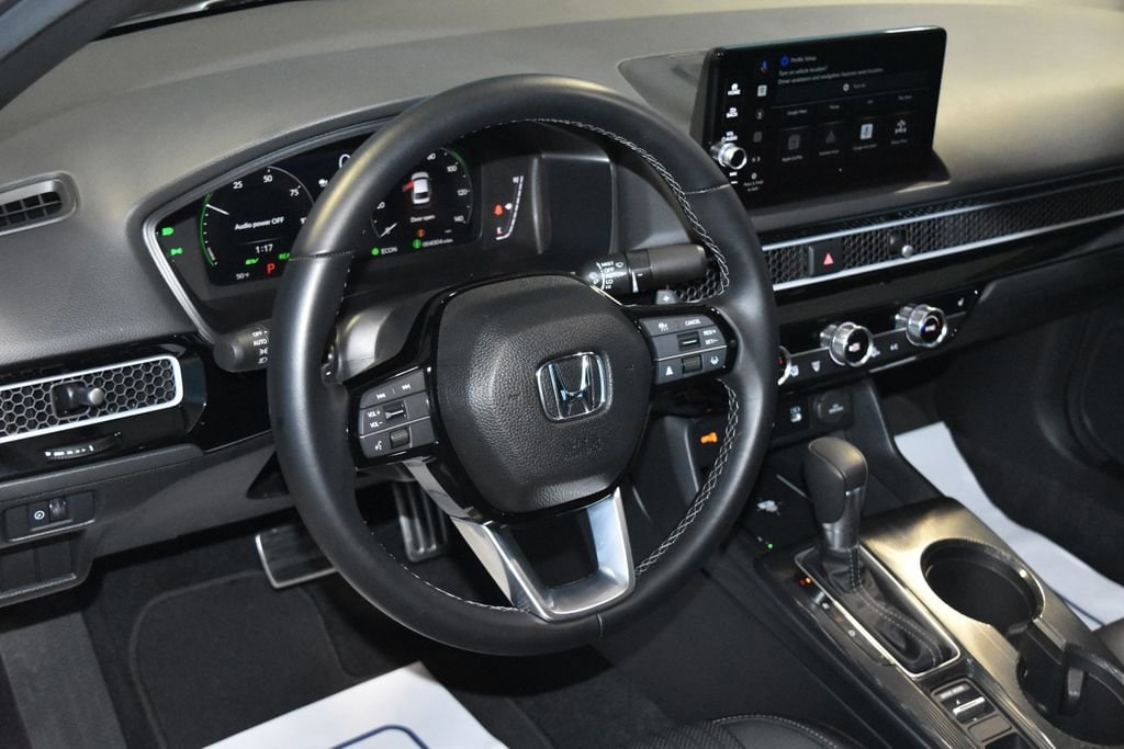 2025 Honda Civic Hybrid Sport Touring Recent Arrival! **Prices listed do not include a $250 documentation fee, applicable tax, title, tags, license, or $195 service and preparation. All pricing, vehicle information, and features (such as accessories and color) are believed to be accurate, but we do not warrant or guarantee such accuracy. The prices shown above may vary from region to region, and incentives are subject to change. Some offers listed may not be available to all customers. All online sale commitments are subject to confirmation of continued availability of vehicle. Once availability is confirmed, online sale agreement becomes binding upon the parties. If any information found on the website is thought to be erroneous, please verify information with a customer service representative. See dealer for full details. 2.0L 16V DOHC, ABS brakes, Active Cruise Control, Alloy wheels, Compass, Electronic Stability Control, Front dual zone A/C, Heated door mirrors, Heated Front Bucket Seats, Heated front seats, Illuminated entry, Low tire pressure warning, Navigation System, Power moonroof, Remote keyless entry, Traction control. CARFAX One-Owner. Clean CARFAX. 4D Sedan Sport Touring eCVT 2.0L 16V DOHC FWD Solar Silver Metallic (812) 477-6201 and shop online at www.dpathonda.com.