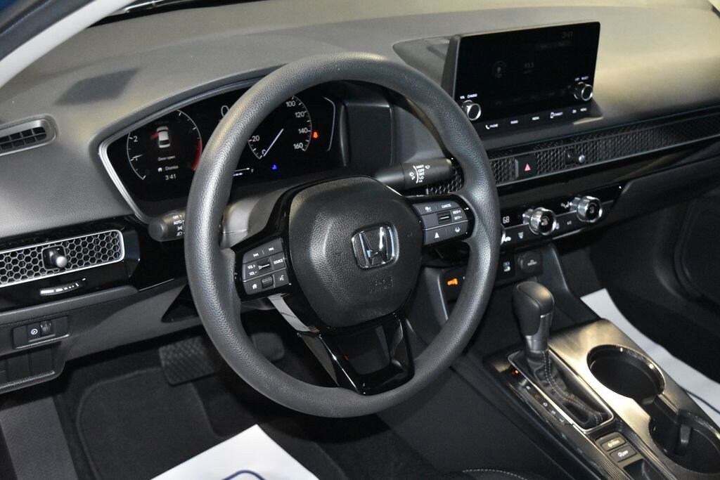 2025 Honda Civic LX Recent Arrival! **Prices listed do not include a $250 documentation fee, applicable tax, title, tags, license, or $195 service and preparation. All pricing, vehicle information, and features (such as accessories and color) are believed to be accurate, but we do not warrant or guarantee such accuracy. The prices shown above may vary from region to region, and incentives are subject to change. Some offers listed may not be available to all customers. All online sale commitments are subject to confirmation of continued availability of vehicle. Once availability is confirmed, online sale agreement becomes binding upon the parties. If any information found on the website is thought to be erroneous, please verify information with a customer service representative. See dealer for full details. Black w/Cloth Seating Surfaces, 16 Wheels w/Full Covers, 4 Speakers, 4-Wheel Disc Brakes, ABS brakes, Adaptive Cruise Control: Adaptive Cruise Control (ACC) with Low-Speed Follow, Air Conditioning, AM/FM radio, Apple CarPlay/Android Auto, Auto High-beam Headlights, Automatic temperature control, Brake assist, Bumpers: body-color, Cloth Seating Surfaces, Delay-off headlights, Driver door bin, Driver vanity mirror, Dual front impact airbags, Dual front side impact airbags, Electronic Stability Control, Emergency communication system: HondaLink, Exterior Parking Camera Rear, Four wheel independent suspension, Front anti-roll bar, Front Bucket Seats, Front Center Armrest, Front reading lights, Fully automatic headlights, Illuminated entry, Knee airbag, Low tire pressure warning, Occupant sensing airbag, Outside temperature display, Overhead airbag, Panic alarm, Passenger door bin, Passenger vanity mirror, Power door mirrors, Power steering, Power windows, Radio data system, Radio: 160-Watt Audio System, Rear anti-roll bar, Rear side impact airbag, Rear window defroster, Remote keyless entry, Security system, Speed control, Speed-sensing steering, Steering wheel mounted audio controls, Tachometer, Telescoping steering wheel, Tilt steering wheel, Traction control, Trip computer, Black w/Cloth Seating Surfaces. CARFAX One-Owner. Clean CARFAX. 4D Sedan LX CVT 2.0L I4 DOHC 16V FWD Blue Lagoon Pearl (812) 477-6201 and shop online at www.dpathonda.com.