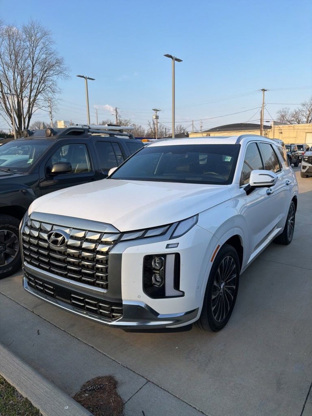 2023 Hyundai Palisade Calligraphy Recent Arrival! We want you to shop confidently for your next used car at The BIG Ford Store, D-Patrick Ford. We are located on Highway 41 and Walnut in Evansville, right next to the Lloyd Expressway. Buy this used vehicle 100% online or in-store. This pre-owned vehicle was put through an extensive inspection before hitting our lot. Because of this, we are able to offer a 3-month/3,000-mile comprehensive limited warranty. You also get our Love It or Return It 5-day, 300-mile Exchange Policy. See our website for more details on both. We also offer extended service plans, vehicle protection plans, and offer a CarFax vehicle history report. *Prices listed do not include a $250 documentation fee, applicable tax, title, tags, license, or $195 service and preparation. All pricing, vehicle information, and features (such as accessories and color) are believed to be accurate, but we do not warrant or guarantee such accuracy. The prices shown above may vary from region to region, and incentives are subject to change. Some offers listed may not be available to all customers. All online sale commitments are subject to confirmation of continued availability of vehicle. Once availability is confirmed, online sale agreement becomes binding upon the parties. If any information found on the website is thought to be erroneous, please verify information with a customer service representative. See dealer for full details. Looking to sell your current vehicle? We buy cars for cash. Every test drive at D-Patrick Ford in Evansville earns $10 to a local charity. Schedule your test drive today! 12 Speakers, 3.648 Axle Ratio, 3rd row seats: split-bench, 4-Wheel Disc Brakes, ABS brakes, Air Conditioning, Alloy wheels, AM/FM radio: SiriusXM, Apple CarPlay & Android Auto, Auto High-beam Headlights, Auto-dimming door mirrors, Auto-dimming Rear-View mirror, Auto-leveling suspension, Automatic temperature control, Brake assist, Bumpers: body-color, Cargo Blocks, Cargo Cover/Screen, Cargo Net, Cargo Package, Cargo Tray, Carpeted Floor Mats, Compass, Delay-off headlights, Driver door bin, Driver vanity mirror, Dual front impact airbags, Dual front side impact airbags, Electronic Stability Control, Emergency communication system: Blue Link Connected Car Service (3-year complimentary subscription), Exterior Parking Camera Rear, First Aid Kit, Four wheel independent suspension, Front anti-roll bar, Front Bucket Seats, Front Center Armrest, Front dual zone A/C, Front reading lights, Fully automatic headlights, Garage door transmitter: HomeLink, harman/kardon® Speakers, Heads-Up Display, Heated & Ventilated Front Bucket Seats, Heated door mirrors, Heated front seats, Heated rear seats, Heated steering wheel, Illuminated entry, Knee airbag, Low tire pressure warning, Memory seat, Navigation System, Occupant sensing airbag, Option Group 01, Outside temperature display, Overhead airbag, Overhead console, Panic alarm, Passenger door bin, Passenger vanity mirror, Power door mirrors, Power driver seat, Power Liftgate, Power moonroof, Power passenger seat, Power steering, Power windows, Premium Nappa Leather Seat Trim, Radio data system, Radio: AM/FM/MP3 Premium Audio System, Rain sensing wipers, Rear air conditioning, Rear anti-roll bar, Rear audio controls, Rear Bumper Applique, Rear reading lights, Rear side impact airbag, Rear window defroster, Rear window wiper, Reclining 3rd row seat, Remote keyless entry, Security system, Speed control, Speed-sensing steering, Split folding rear seat, Spoiler, Steering wheel mounted audio controls, Tachometer, Telescoping steering wheel, Tilt steering wheel, Traction control, Trip computer, Turn signal indicator mirrors, Variably intermittent wipers, Ventilated front seats, Ventilated rear seats, Wheels: 20 x 7.5J Calligraphy Exclusive Alloy. 4D Sport Utility Calligraphy 8-Speed Automatic with SHIFTRONIC V6 AWD Hyper White CALL TODAY (812) 625-4823 OR SHOP ONLINE AT WWW.DPATRICKFORD.COM.