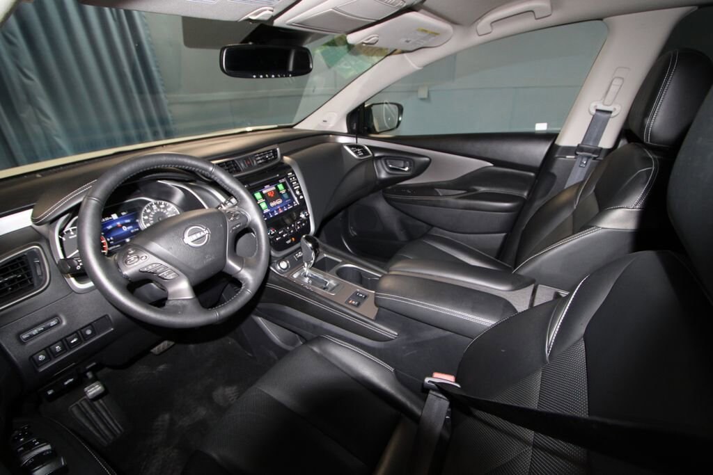 2023 Nissan Murano SL We want you to shop confidently for your next used car at The BIG Ford Store, D-Patrick Ford. We are located on Highway 41 and Walnut in Evansville, right next to the Lloyd Expressway. Buy this used vehicle 100% online or in-store. This pre-owned vehicle was put through an extensive inspection before hitting our lot. Because of this, we are able to offer a 3-month/3,000-mile comprehensive limited warranty. You also get our Love It or Return It 5-day, 300-mile Exchange Policy. See our website for more details on both. We also offer extended service plans, vehicle protection plans, and offer a free to you CarFax vehicle history report. *Prices listed do not include a $250 documentation fee, applicable tax, title, tags, license, or $195 service and preparation. All pricing, vehicle information, and features (such as accessories and color) are believed to be accurate, but we do not warrant or guarantee such accuracy. The prices shown above may vary from region to region, and incentives are subject to change. Some offers listed may not be available to all customers. All online sale commitments are subject to confirmation of continued availability of vehicle. Once availability is confirmed, online sale agreement becomes binding upon the parties. If any information found on the website is thought to be erroneous, please verify information with a customer service representative. See dealer for full details. Looking to sell your current vehicle? We buy cars for cash. Every test drive at D-Patrick Ford in Evansville earns $10 to a local charity. Schedule your test drive today! CVT with Xtronic, AWD, 11 Speakers, 4-Wheel Disc Brakes, 4.667 Axle Ratio, ABS brakes, Air Conditioning, Alloy wheels, AM/FM radio: SiriusXM, AM/FM/CD/MP3/WMA Audio System, Auto High-beam Headlights, Auto-dimming Rear-View mirror, Automatic temperature control, Blind Spot Warning, Brake assist, Bumpers: body-color, Cargo Area Protector, Cargo Net, Cargo Package, Carpeted Floor Mats & Carpeted Cargo Mat, CD player, Child-Seat-Sensing Airbag, Delay-off headlights, Driver door bin, Driver vanity mirror, Dual front impact airbags, Dual front side impact airbags, Electronic Stability Control, Exterior Parking Camera Rear, First Aid Kit, Four wheel independent suspension, Front anti-roll bar, Front Bucket Seats, Front Center Armrest, Front dual zone A/C, Front fog lights, Front reading lights, Fully automatic headlights, Garage door transmitter: HomeLink, Heated door mirrors, Heated Front Bucket Seats, Heated front seats, Heated rear seats, Heated steering wheel, Illuminated entry, Illuminated Kick Plates, Illuminated Kick Plates (PIO), Knee airbag, Leather-Appointed Seat Trim, Low tire pressure warning, Memory seat, Navigation system: NissanConnect Navigation, NissanConnect featuring Apple CarPlay and Android Auto, Occupant sensing airbag, Outside temperature display, Overhead airbag, Overhead console, Panic alarm, Passenger door bin, Passenger vanity mirror, Power door mirrors, Power driver seat, Power Liftgate, Power passenger seat, Power steering, Power windows, Radio data system, Rear anti-roll bar, Rear Bumper Protector, Rear reading lights, Rear seat center armrest, Rear side impact airbag, Rear window defroster, Rear window wiper, Remote keyless entry, Retractable Cargo Cover, Security system, Speed control, Speed-sensing steering, Speed-Sensitive Wipers, Splash Guards (B92), Split folding rear seat, Spoiler, Steering wheel mounted audio controls, Tachometer, Telescoping steering wheel, Tilt steering wheel, Traction control, Trip computer, Turn signal indicator mirrors, Variably intermittent wipers, Wheels: 20 Machined Aluminum-Alloy, CVT with Xtronic, AWD. CARFAX One-Owner. Clean CARFAX. 4D Sport Utility SL CVT with Xtronic 3.5L V6 DOHC 24V AWD Pearl White Tricoat CALL TODAY (812) 625-4823 OR SHOP ONLINE AT WWW.DPATRICKFORD.COM.