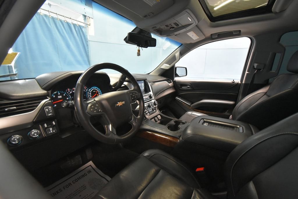 - TIRES P275/55R20 ALL-SEASON BLACKWALL,SUN ENTERTAINMENT AND DESTINATIONS PACKAGE includes additional 9 months of SiriusXM Radio and NavTraffic service (CF5) power sunroof (U42) rear seat DVD entertainment system and (IO6) Chevrolet MyLink radio with navigation,REAR AXLE 3.42 RATIO,MIRRORS OUTSIDE HEATED POWER-ADJUSTABLE POWER-FOLDING AND DRIVER-SIDE AUTO-DIMMING with integrated turn signal indicators and ground illumination,STEERING WHEEL HEATED LEATHER-WRAPPED AND COLOR-KEYED with theft-deterrent locking feature,TRAILER BRAKE CONTROLLER INTEGRATED,MAX TRAILERING PACKAGE (Includes (GU6) 3.42 rear axle ratio (JL1) Trailer brake controller and (Z85) Suspension Package. 4WD models also include (NQH) 2-speed active Transfer case.,SEATS FRONT BUCKET WITH LEATHER-APPOINTED SEATING heated seat cushions and seat backs 10-way power driver and passenger seat includes 6-way power cushions driver seat 2-position memory 2-way power lumbar control and power recline (STD),SEATS SECOND ROW BUCKET POWER RELEASE,LPO REAR CARGO MAT ALL-WEATHER (dealer-installed),LPO ALL-WEATHER FLOOR MATS (dealer-installed),WIRELESS CHARGING,TRANSMISSION 6-SPEED AUTOMATIC ELECTRONICALLY CONTROLLED with overdrive and tow/haul mode (STD),SUNROOF POWER TILT-SLIDING with express-open and close and wind deflector,LPO BLACK BOWTIE EMBLEMS FRONT AND REAR (dealer-installed),FRONT AND REAR PARKING ASSIST,KEYLESS START PUSH BUTTON,PAINT SCHEME SOLID APPLICATION,ENGINE 5.3L V8 ECOTEC3 WITH ACTIVE FUEL MANAGEMENT DIRECT INJECTION AND VARIABLE VALVE TIMING includes aluminum block construction (355 hp [265 kW] @ 5600 rpm 383 lb-ft of torque [518 N-m] @ 4100 rpm) (STD),TRANSFER CASE ACTIVE 2-SPEED ELECTRONIC AUTOTRAC with rotary controls includes neutral position for dinghy towing,REAR CROSS-TRAFFIC ALERT SENSOR INDICATOR,LT PREFERRED EQUIPMENT GROUP Includes Standard Equipment,FOG LAMPS,WHEELS 20 X 9 (50.8 CM X 22.9 CM) POLISHED-ALUMINUM,JET BLACK LEATHER-APPOINTED SEAT TRIM,DVD SCREEN THIRD ROW,LIFTGATE HANDS FREE POWER,SEATS THIRD ROW 60/40 SPLIT-BENCH POWER FOLD,PASSIVE ENTRY SYSTEM includes (AQQ) Remote Keyless Entry,STEERING COLUMN POWER TILT AND TELESCOPIC,BLACK,LUXURY PACKAGE includes additional 9 months of SiriusXM Radio (AS8) power fold third row 60/40 split bench seats (ATH) Passive Entry System (ATT) second row power release 60/40 split folding bench seat (BTM) keyless start (DL3) outside heated power-adjustable power-folding mirrors (KA6) heated second row seats (K4C) Wireless charging device (N38) memory power tilt and telescopic steering column (TC2) Hands free liftgate (T3U) fog lamps (UD5) front and rear parking assist (UFG) Rear Cross-Traffic Alert (UKC) Side Blind Zone Alert and (UVD) heated steering wheel and color key rear fascia trailer hitch closeout,SUSPENSION PACKAGE STANDARD INCREASED CAPACITY PREMIUM SMOOTH RIDE with Air leveler,SIDE BLIND ZONE ALERT WITH LANE CHANGE ALERT,LPO INTERIOR PROTECTION PACKAGE includes (VAV) All-weather floor mats LPO and (VLI) Rear cargo mat LPO (dealer-installed),SEATS HEATED SECOND ROW OUTBOARD SEATS,ENTERTAINMENT SYSTEM REAR SEAT BLU-RAY/DVD with remote control overhead display Wi-Fi wireless projection capability four 2-channel wireless digital headphones auxiliary HDMI/MHL audio/video input and 2 USB ports,MOLDINGS BRIGHT BODYSIDE,AUDIO SYSTEM CHEVROLET MYLINK RADIO WITH NAVIGATION AND 8 DIAGONAL COLOR TOUCH-SCREEN AM/FM stereo with seek-and-scan and digital clock includes Bluetooth streaming audio for music and select phones